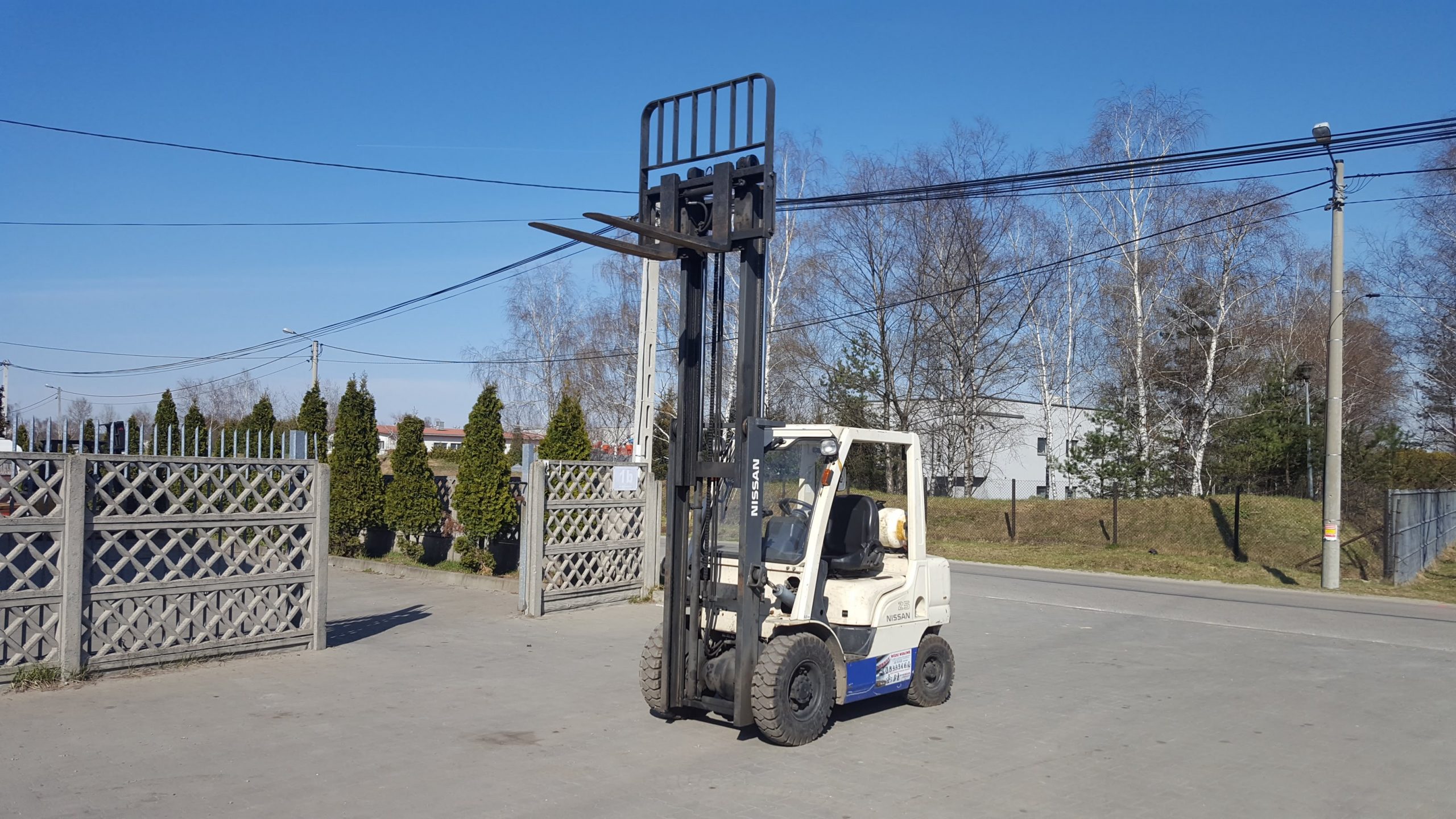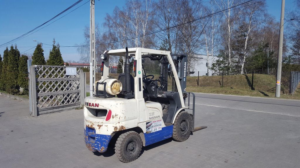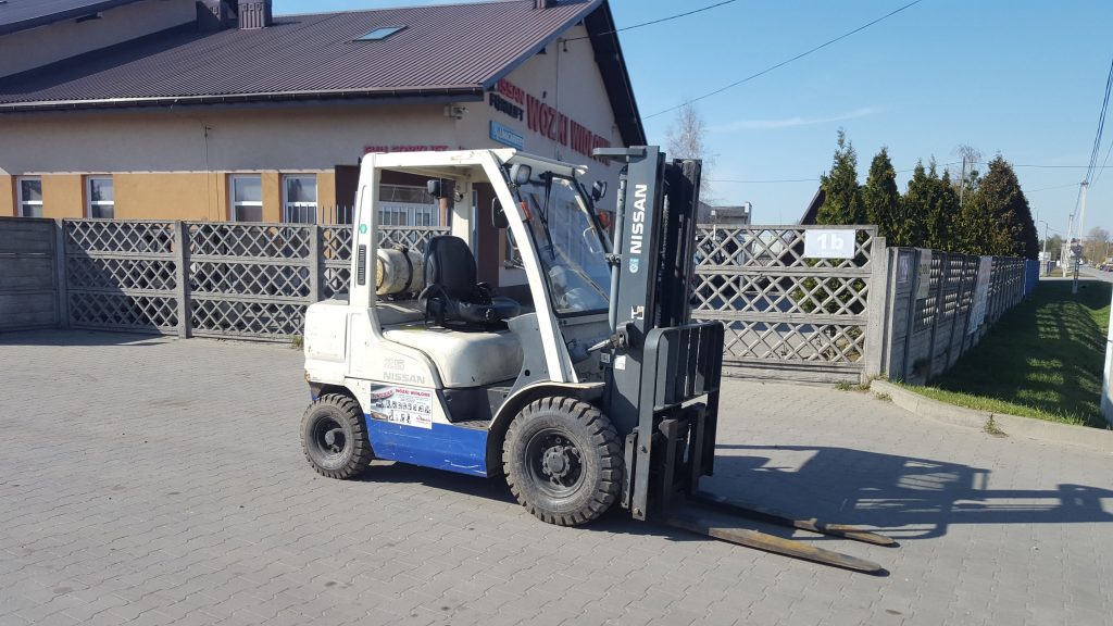 Nissan PL02A25U Wózek widłowy Nissan PL02A25U zasilanie: LPGudźwig: 2500 kgogumienie: pneumatycznemaszt: 2W300 (wysokość podnoszenia 3000 mm)przesuw boczny zawieszany